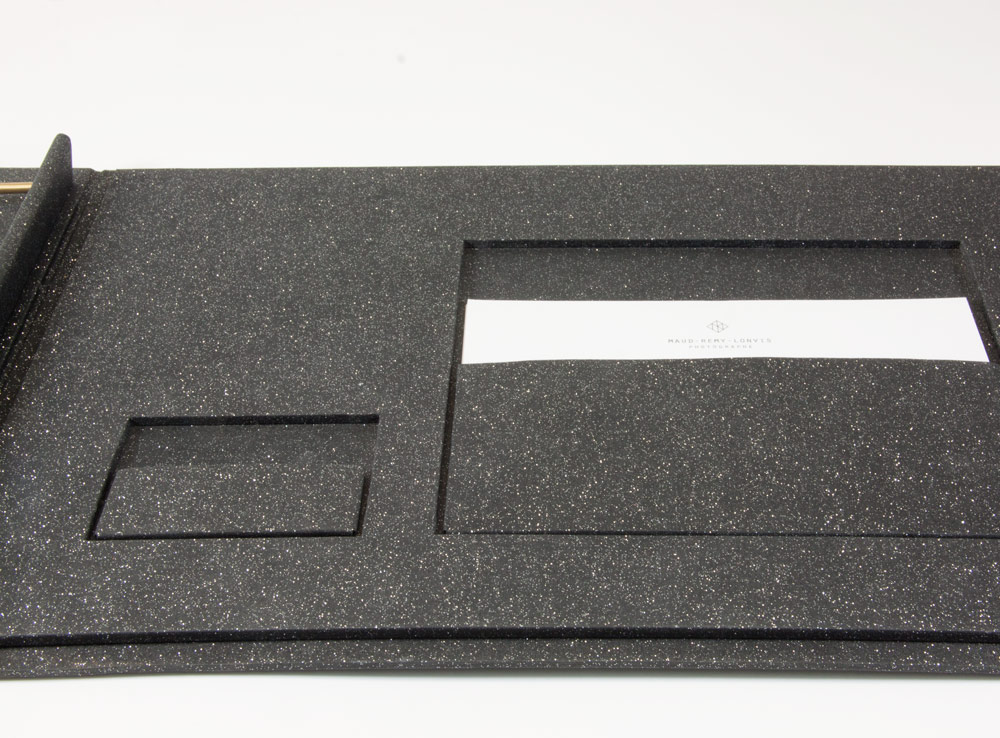 Structures type « classeurs ». Pour les photographes et professionnels. Sur Mesure. Toile. Cuir. Coins arrondis. Pochette intérieure pour recevoir cartes de visites ou composites. Epaisseur ajustable en fonction du document. Permet de remplacer des feuilles. Possibilité d’emplacements pour CD, clés USB, tablettes. Perçage et rainage des feuilles.